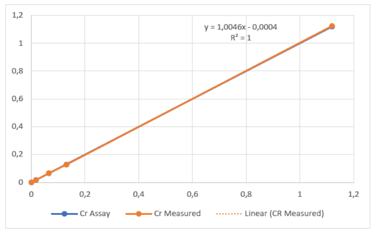 根據(jù)腐蝕模型的預(yù)測,鉻含量低于0.04%的碳鋼會很容易受到流動加速腐蝕。這個監(jiān)控閾值處于奧林巴斯Vanta分析儀測量鐵基鋼材中鉻元素含量的分析范圍內(nèi)。在碳鋼管道中加入少量的鉻,可以大大減少流體加速腐蝕的速度。因此,對碳鋼中低含量的鉻(Cr)進行高精度的測量,是預(yù)測這些管道使用壽命的關(guān)鍵。