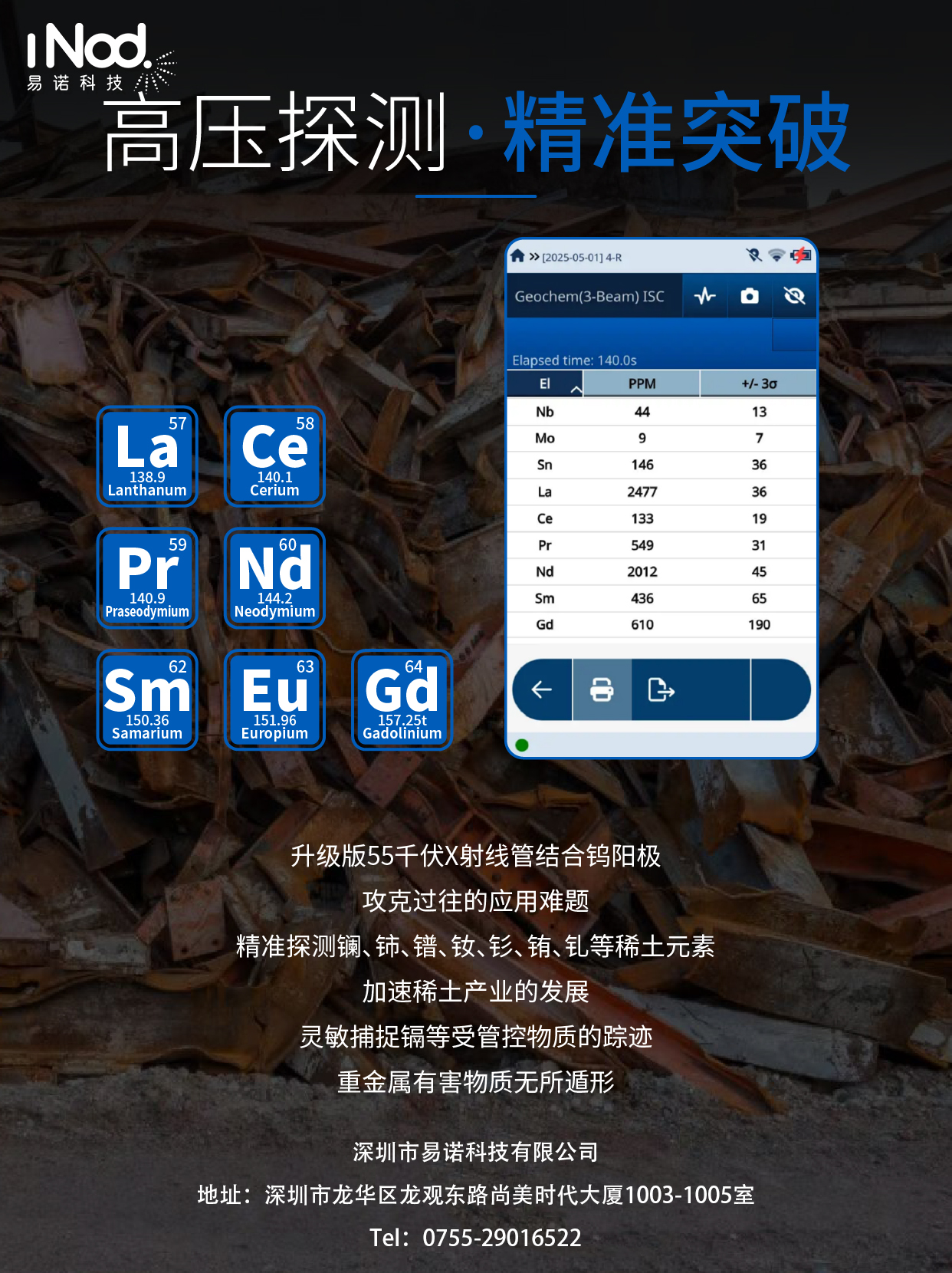 ? 可檢測(cè)多種稀土元素:能夠檢測(cè)鑭(La)、鈰(Ce)、鐠(Pr)、釹(Nd)、鈧(Sc)、釔(Y)等多種稀土元素,以及釷(Th)、鈾(U)、銫(Cs)和鋇(Ba)等與稀土元素相近的元素,可覆蓋稀土元素檢測(cè)的多種需求。