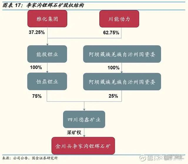 四川能投鋰業(yè)控制的德鑫礦業(yè)擁有李家溝鋰礦采礦權(quán),2021年,川能動力以9.27億元完成對四川能投鋰業(yè)62.75%股權(quán)的收購,剩余股權(quán)(37.25%)歸屬于雅化集團(tuán)。
