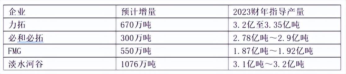 供應端,對力拓、必和必拓、淡水河谷、FMG四大寡頭的2023財年鐵礦石產量指導情況來看,預計2023年四大礦山鐵礦石產銷量不減反增,增加約2600萬噸。根據發(fā)往中國比例估算,對國內增量約為2000萬噸。