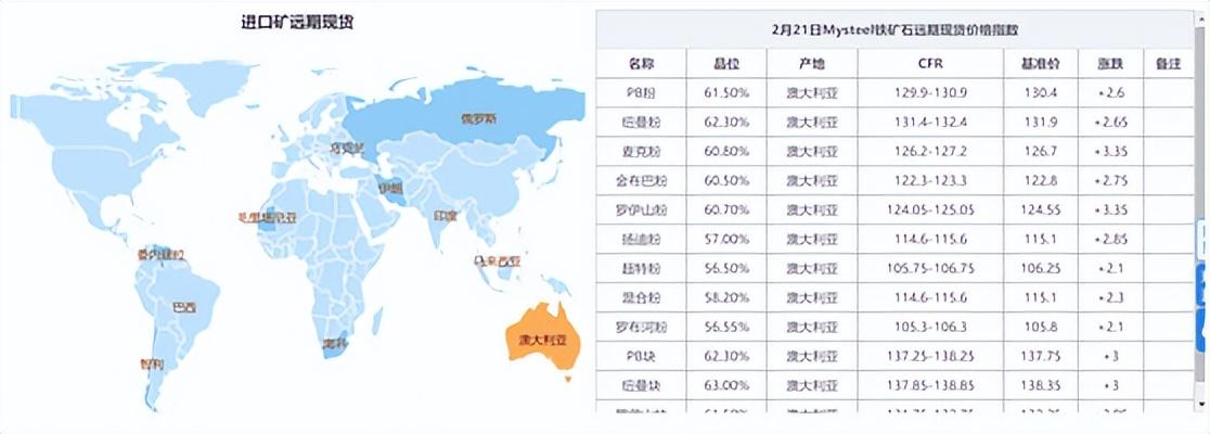 截至2月21日下午收盤,大商所鐵礦石期貨主力合約報收919元/噸,上漲3.43%,創(chuàng)下近九個月來價格新高,較去年10月底上漲超50%。西南期貨數據顯示,目前進口礦報價已逼近130美元/噸,較今年初上漲約10%。