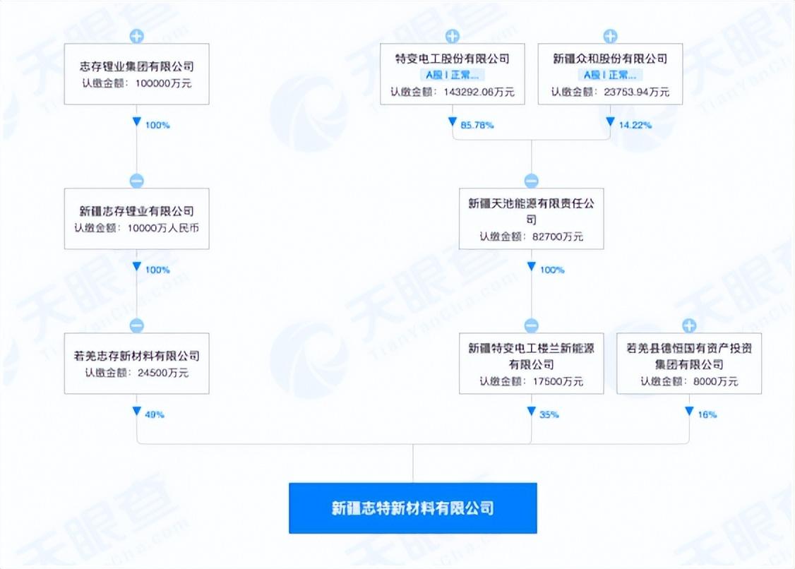 據(jù)天眼查顯示,新疆志特新材料有限公司成立于2022年11月7日,若羌志存新材料有限公司持股49%,新疆特變電工樓蘭新能源有限公司持股35%,若羌縣德恒國有資產(chǎn)投資集團(tuán)有限公司持股16%。