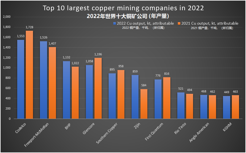 從2022年銅礦產(chǎn)量增加的礦企中,可以看出,自由港-麥克莫蘭公司(Freeport-McMoRan)在印尼的Grasberg礦山,必和必拓在澳大利亞的Olympic Dam礦山,紫金礦業(yè)在剛果(金)的Kamoa銅礦,塞爾維亞Timok銅金礦以及中國(guó)西藏巨龍銅礦......這些非南美地區(qū)的銅項(xiàng)目,成為了市場(chǎng)增量的重要組成。