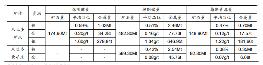 米拉多銅礦床一期于2021年達產(chǎn),銅礦石的處理能力為 2000萬噸/年,每年產(chǎn)出約9萬噸銅金屬量對應(yīng)的銅精礦,二期設(shè)計擴大到 2,640萬噸/年;米拉多北銅礦床二期設(shè)計采選能力 1980萬噸/年。米拉多銅礦整體二期項目預(yù)計于2025年6月建成投產(chǎn),擴建后總采選規(guī)模將達4620萬噸/年,預(yù)計每年產(chǎn)銅超20萬噸。