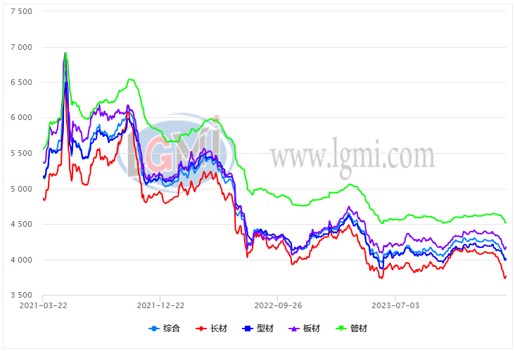 具體來(lái)看,蘭格鋼鐵長(zhǎng)材絕對(duì)價(jià)格指數(shù)為3766元,較去年同期下降14.8%;蘭格鋼鐵型材絕對(duì)價(jià)格指數(shù)為3997元,較去年同期下降12.5%;蘭格鋼鐵板材絕對(duì)價(jià)格指數(shù)為4175元,較去年同期下降11.1%;蘭格鋼鐵管材絕對(duì)價(jià)格指數(shù)為4518元,較去年同期下降10.6%。