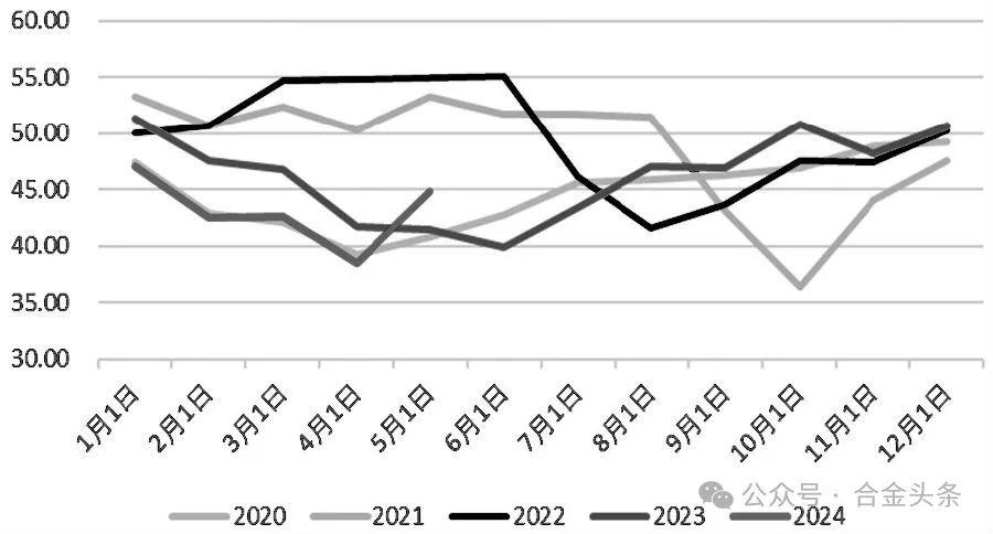 鋼鐵行業(yè)在鐵合金下游需求中占比最大。近兩年受地產(chǎn)投資下行拖累,鋼鐵行業(yè)盈利能力持續(xù)下滑。根據(jù)統(tǒng)計(jì)局?jǐn)?shù)據(jù),2024年1—5月鋼鐵行業(yè)利潤(rùn)率為-0.39%。如何提高盈利能力、降本增效是亟須面對(duì)的問題。對(duì)鋼廠來說,原料的采購和補(bǔ)庫是最關(guān)鍵的環(huán)節(jié),鐵合金作為“工業(yè)味精”,首當(dāng)其沖面臨需求收縮的沖擊。因此,鋼廠自去年開始便主動(dòng)降低爐料庫存天數(shù),尤其是鐵合金庫存已從往年25~26天平均水平降至目前不足15天。