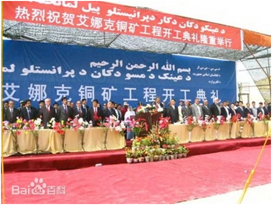 根據(jù)最終簽署的協(xié)議,艾娜克銅礦項(xiàng)目生產(chǎn)規(guī)模為年產(chǎn)精煉銅22萬噸(計(jì)劃擴(kuò)大到年產(chǎn)30萬噸),項(xiàng)目建設(shè)期5年,開采期限30年。配套設(shè)施包括一個(gè)40萬千瓦的火電廠、一個(gè)水源地泵站和一個(gè)磷肥廠,以及學(xué)校、醫(yī)院、清真寺等公共服務(wù)設(shè)施,還計(jì)劃修建鋼廠和鐵路等??偼顿Y將超過100億美元。