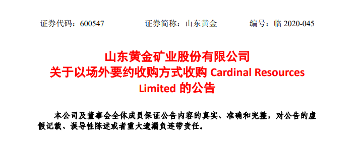 值得關注的是,2020年,山東黃金公司的境外全資子公司山東黃金礦業(yè)(香港)有限公司(簡稱“山東黃金香港”)經過和包括俄羅斯黃金巨頭諾德黃金(Nordgold)在內的多家公司競爭,最終和卡帝諾資源有限公司簽署《要約實施協(xié)議》,以場外要約收購方式向持有卡帝諾全部已發(fā)行股份的股東發(fā)出場外附條件要約收購,從而獲得了其位于加納的Namdini金礦項目的開采權。這也是山東黃金在西非加納擁有的首個黃金礦業(yè)項目。
