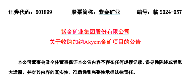 2024年10月9日,紫金礦業(yè)宣布擬出資10億美元(約70.71億人民幣)收購(gòu)紐蒙特全資子公司Newmont Golden Ridge Ltd的100%股權(quán),拿下加納Akyem金礦項(xiàng)目的全部權(quán)益。這是紫金礦業(yè)自2020年以來的第7宗金礦并購(gòu),標(biāo)志著公司在全球金礦布局的持續(xù)加強(qiáng)。Akyem金礦擁有黃金資源量54.4噸,儲(chǔ)量約34.6噸,年均產(chǎn)金約5.8噸。